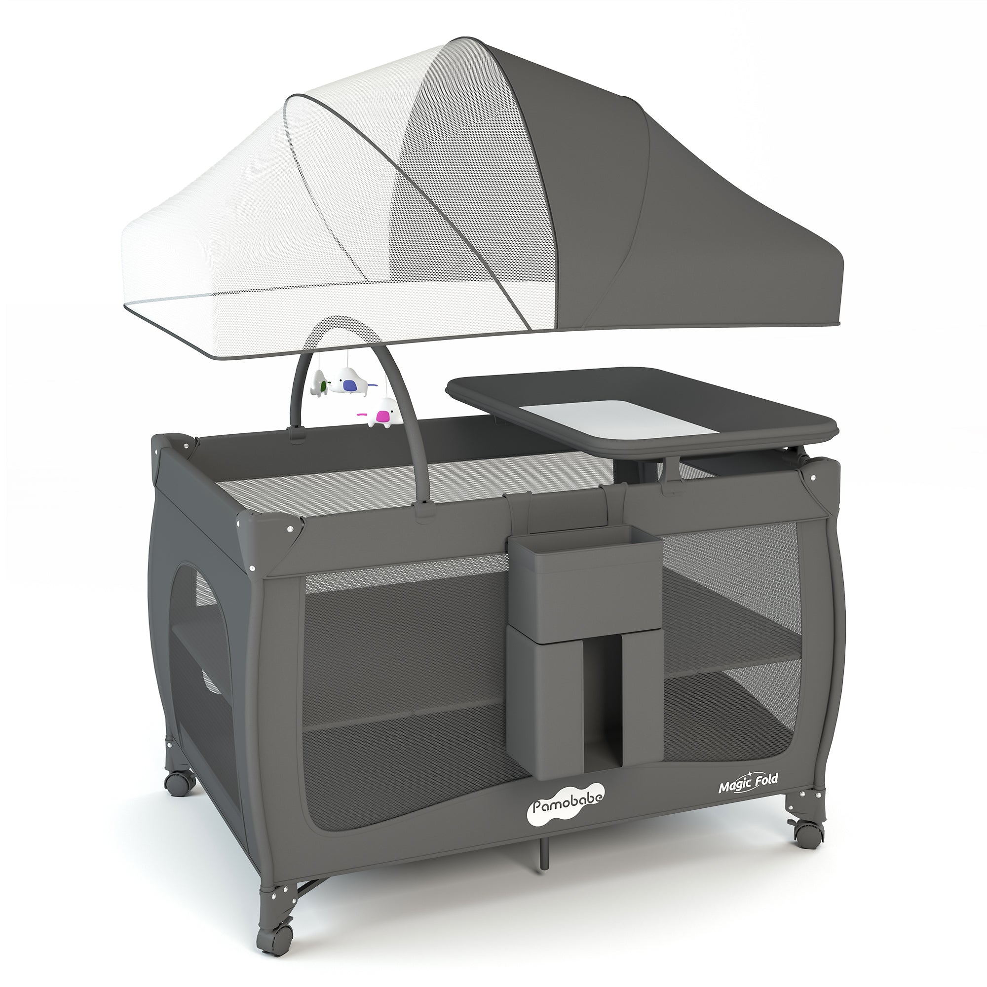 Pamo Babe 1-Second Setup 4-in-1 Playard for Babies - Portable Crib with Mosquito Net & Changing Table, Breathable Mesh, Toy Bar